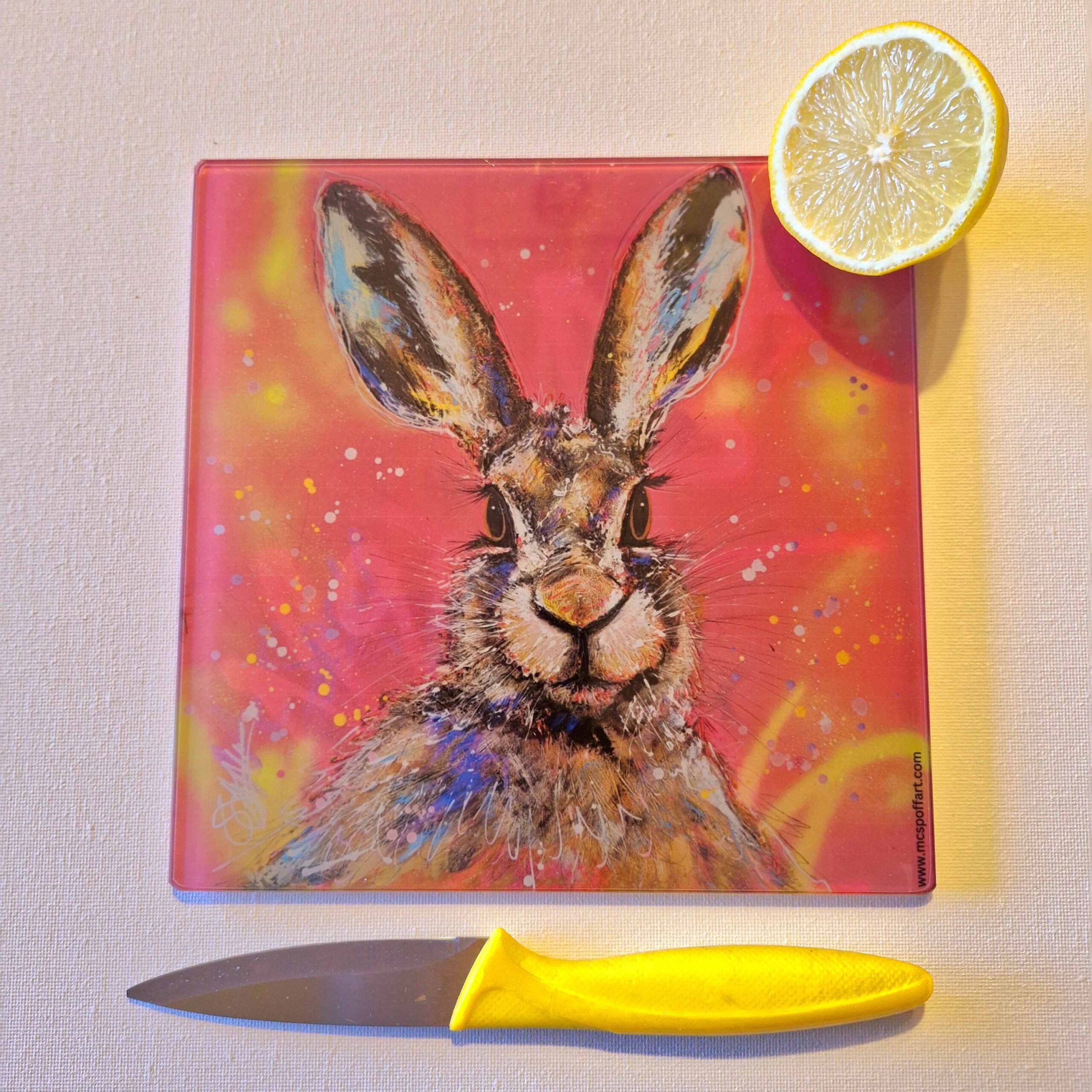 Glass Cutting Board – Martha the Hare – 20cm x 20cm – SMOOTH – BACK IN STOCK SOON