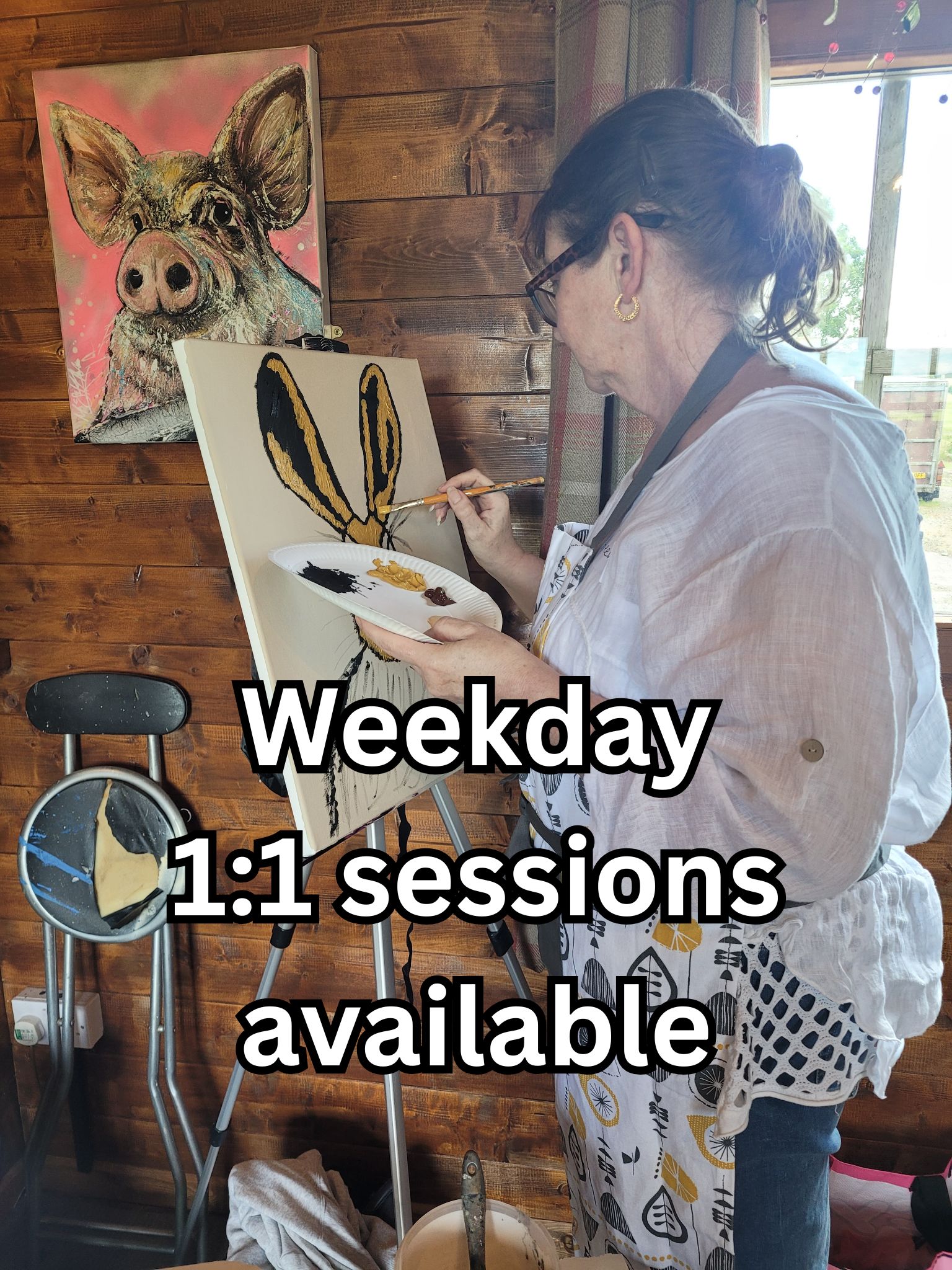 1:1 Adult Beginners Painting class.. Sarah will be in touch with you regarding any ideas of what you would like to create in your time and guide you 1 : 1 on a day that suits you in the week.